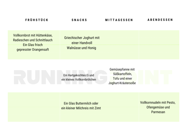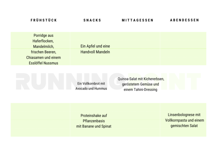 Beispielhafte Tagesernährung für vegetarische Läuferinnen und Läufer